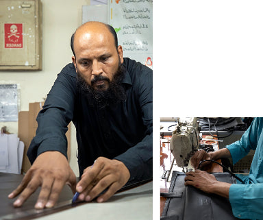 Unsere eigene Produktionsstätte in Pakistan gewährleistet ein sicheres und faires Arbeitsumfeld für unser Team vor Ort und garantiert stets einen hohen Qualitätsstandard. Unsere personalisierbaren Leder- und Canvasprodukte werden gemeinsam mit dem Kunden entworfen und entwickelt.