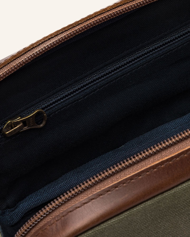 - Material: Aus gewachstem Canvas-Stoff (Lotuseffekt, wasserabweisend)