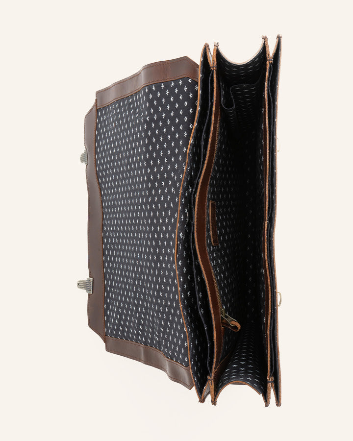 The modern leather briefcase Notes combines classic design with high functionality. The spacious compartments provide ample room for important documents and a laptop or MacBook up to 16 inches in size. Two additional slip pockets on the front, along with an extra zippered compartment, allow quick access to your smartphone, wallet, and keys. The trolley sleeve on the back and the included shoulder strap ensure comfortable travel.