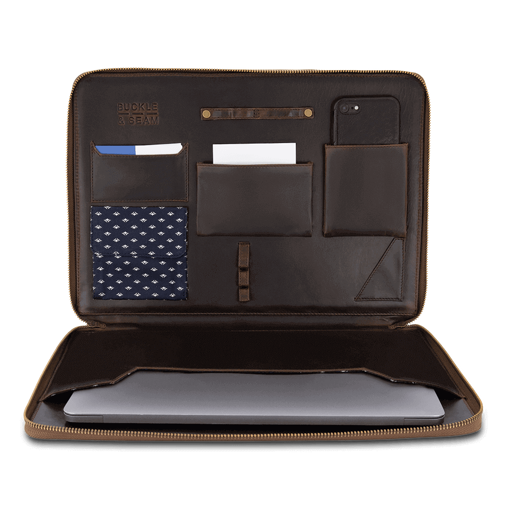 Every product from the Buckle & Seam brand is unique. Our men's collections are handcrafted from leather in its highest quality form. This form is referred to as 'Full Grain,' which means the leather is processed in its full thickness. This creates an exceptionally durable end product that you can carry by your side for years. The way our models are crafted also ensures that each of them develops its own patina over the years. Just like you, your bag only becomes more beautiful with age.