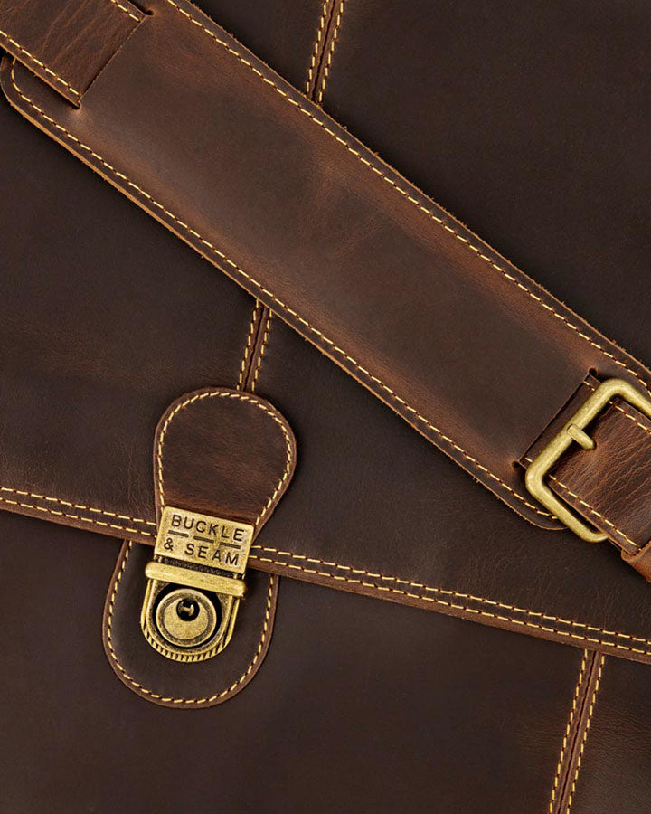 Every product from the Buckle & Seam brand is unique. Our men's collections are handcrafted from leather in its highest quality form. This form is referred to as 'Full Grain,' which means the leather is processed in its full thickness. This creates an exceptionally durable end product that you can carry by your side for years. The way our models are crafted also ensures that each of them develops its own patina over the years. Just like you, your bag only becomes more beautiful with age.
