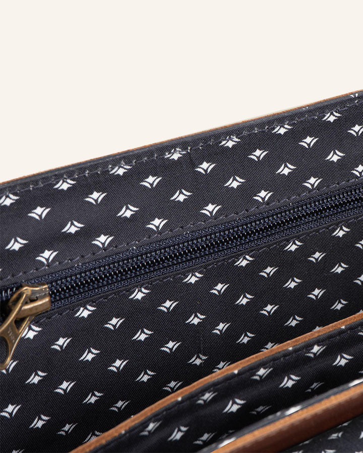 The Times Messenger Bag accompanies you in style and practicality throughout your day. Thanks to its well-thought-out design, it offers ample space for all your essentials – whether it's a laptop, tablet, notebook, wallet, or keys. The premium craftsmanship, made from high-quality natural leather, ensures an elegant look and a comfortable carrying experience. With the adjustable shoulder strap, you can customize the bag to your needs, while the smart interior layout keeps everything organized. Perfect for work, university, or travel!